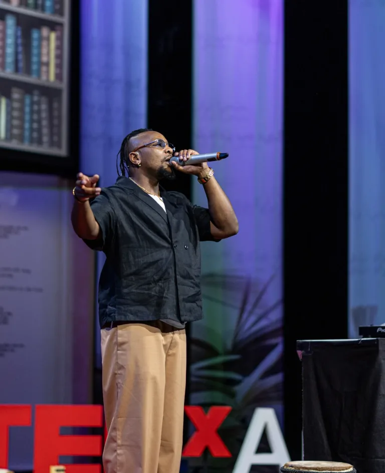 Idd Aziz’s performance at TEDxArendal 2025 is not a traditional talk.